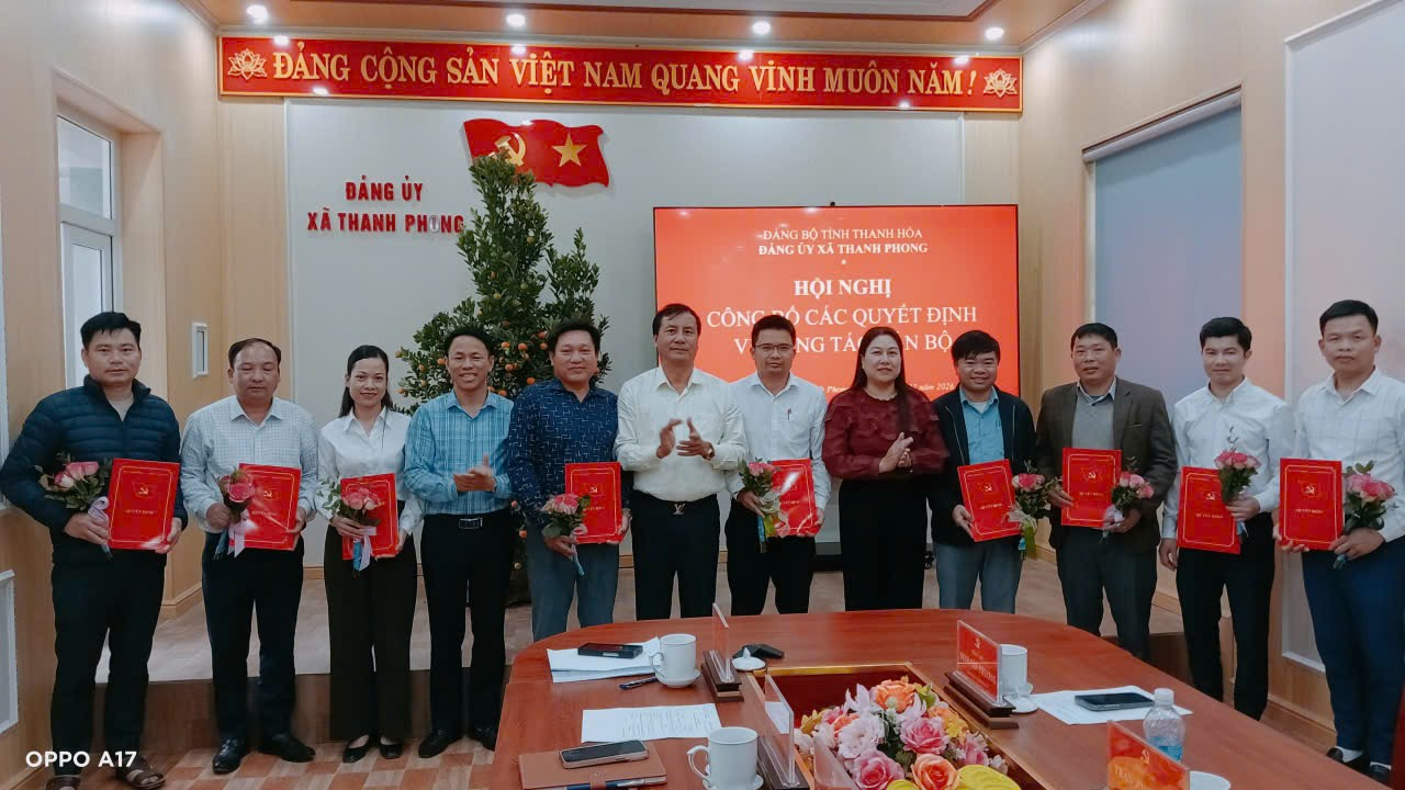 Tại buổi lễ đồng chí Nguyễn Anh Ngọc, Ủy viên Ban Thường vụ Đảng ủy, Trưởng Ban Xây dựng Đảng đã công bố các Quyết định bổ nhiệm chúc vụ và luân chuyển công tác đối với; Ông Nguyễn Đăng Vĩnh Đảng ủy viên, Phó Chủ tịch ủy ban mặt trận tổ quốc xã được luân chuyển đến UBND xã nhận nhiệm vụ và được bổ nhiệm chức vụ Trưởng Phòng kinh tế. Bà Lê Thị Thu Đảng ủy viên, Phó Trưởng ban văn hóa xã hội HĐND xã được luân chuyển đến Đảng ủy xã Thanh Phong bổ nhiệm chức vụ Chánh Văn phòng Đảng ủy; Ông Lê Văn Dũng Đảng ủy viên, Phó trưởng phòng văn hóa được bổ nhiệm giữ chức vụ Chánh Văn phòng HĐND và UBND; Ông Phùng Đình Dũng chuyên viên phòng kinh tế được bổ nhiệm chức vụ Phó trưởng phòng kinh tế; Ông Quách Xuân Hùng chuyên viên văn phòng HĐND và UBND được bổ nhiệm Phó Chánh văn phòng HĐND và UBND; Ông Lô Văn Luyện chuyên viên văn phòng HĐND và UBND được bổ nhiệm chức vụ Phó Trưởng phòng văn hóa; Ông Vi Văn Biên chuyên viên Ban xây dựng đảng được bổ nhiệm giữ chức vụ Phó Trưởng Ban xây dựng đảng; Ông Lâm Đại Đồng, Phó hiệu trưởng Truoengf THCS Thanh Phong được bổ nhiệm giữ chúc vụ Hiệu trưởng trường THCS Thanh Phong. Hội nghị cũng đã công bố Quyết định của Tỉnh ủy bổ nhiệm ông Hà Văn Thành Phó chủ tịch UBMTTQ xã giữ chức vụ Chủ tịch Hội Nông dân xã Thanh Phong và Quyết định bổ nhiệm đồng chí Thiếu tá Nguyễn Văn Huân giữ chức vụ Chỉ huy trưởng Ban chỉ huy Quân sự xã Thanh Phong.