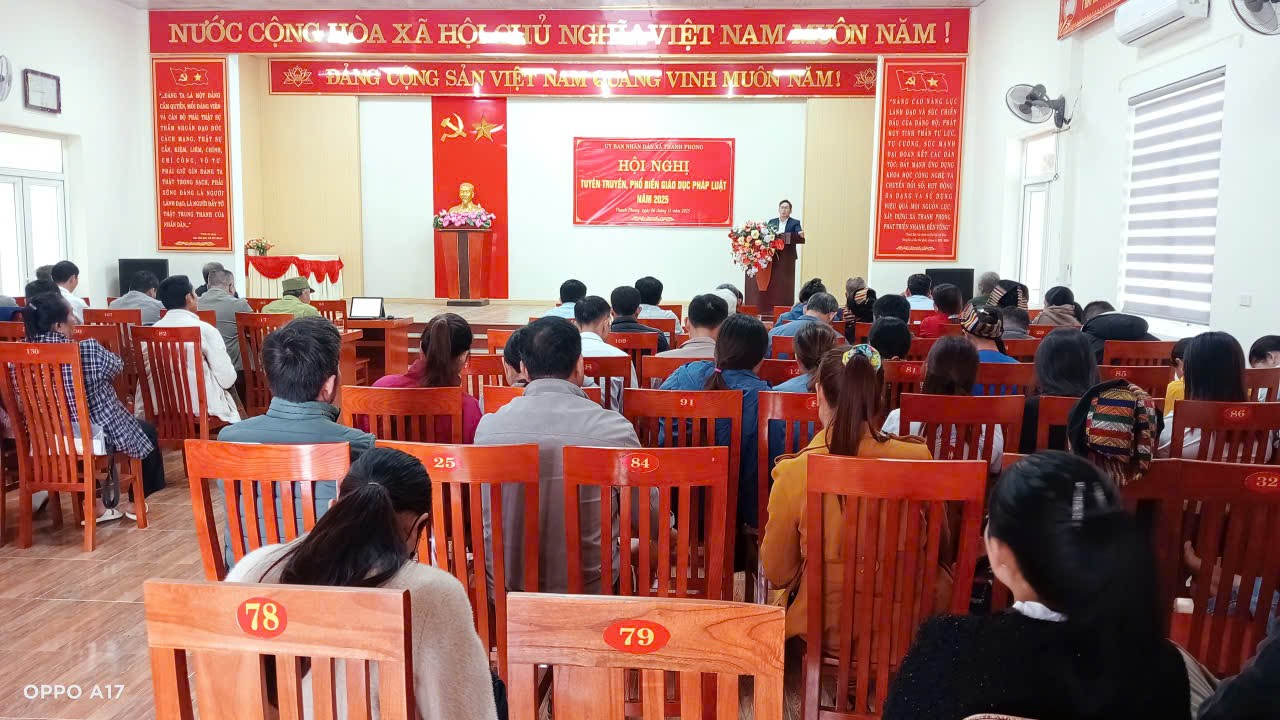 Sáng ngày 06/11/2025, tại Hội trường lớn UBND xã Thanh Phong đã diễn ra Hội nghị tuyên truyền, phổ biến giáo dục pháp luật năm 2025. Đây là hoạt động thiết thực nhằm triển khai Kế hoạch số 58/KH-UBND ngày 02/10/2025 về công tác phổ biến, giáo dục pháp luật; hòa giải ở cơ sở; xây dựng xã đạt chuẩn tiếp cận pháp luật, đồng thời hưởng ứng Ngày Pháp luật nước Cộng hòa xã hội chủ nghĩa Việt Nam theo Kế hoạch số 84/KH-UBND ngày 31/10/2025.